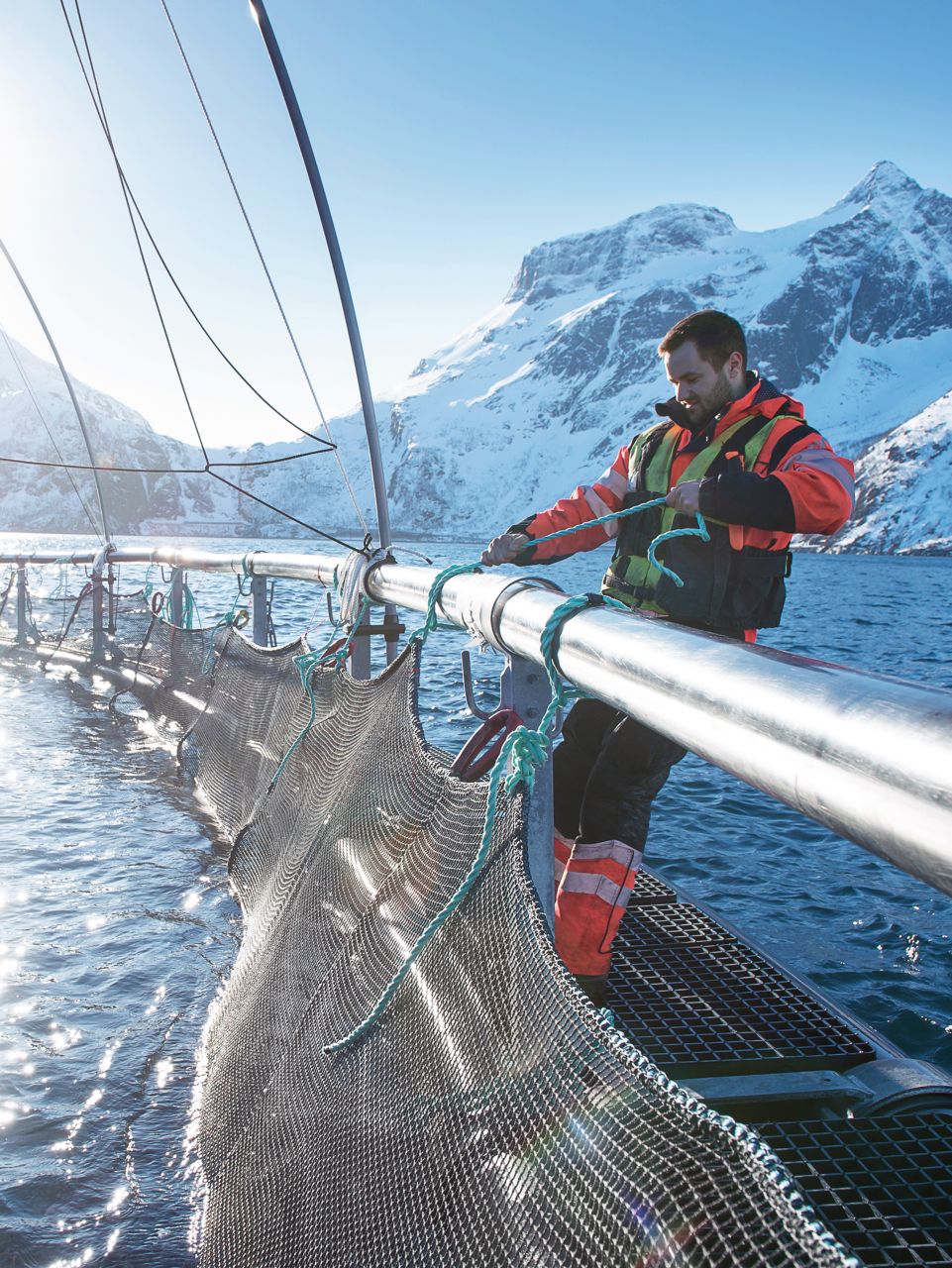 Das nährstoffreiche Wasser des Atlantiks durchströmt die Netzgehege in den Fjorden Norwegens. Foto: ©Knut Åserud