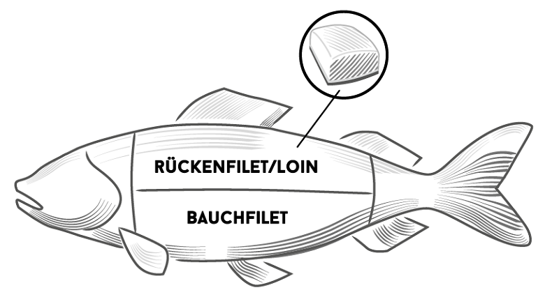 ✓ Die Profis in unserer Manufaktur schneiden die Portionen überwiegend aus dem edelsten Teil des Fisches: dem Rückenfilet.