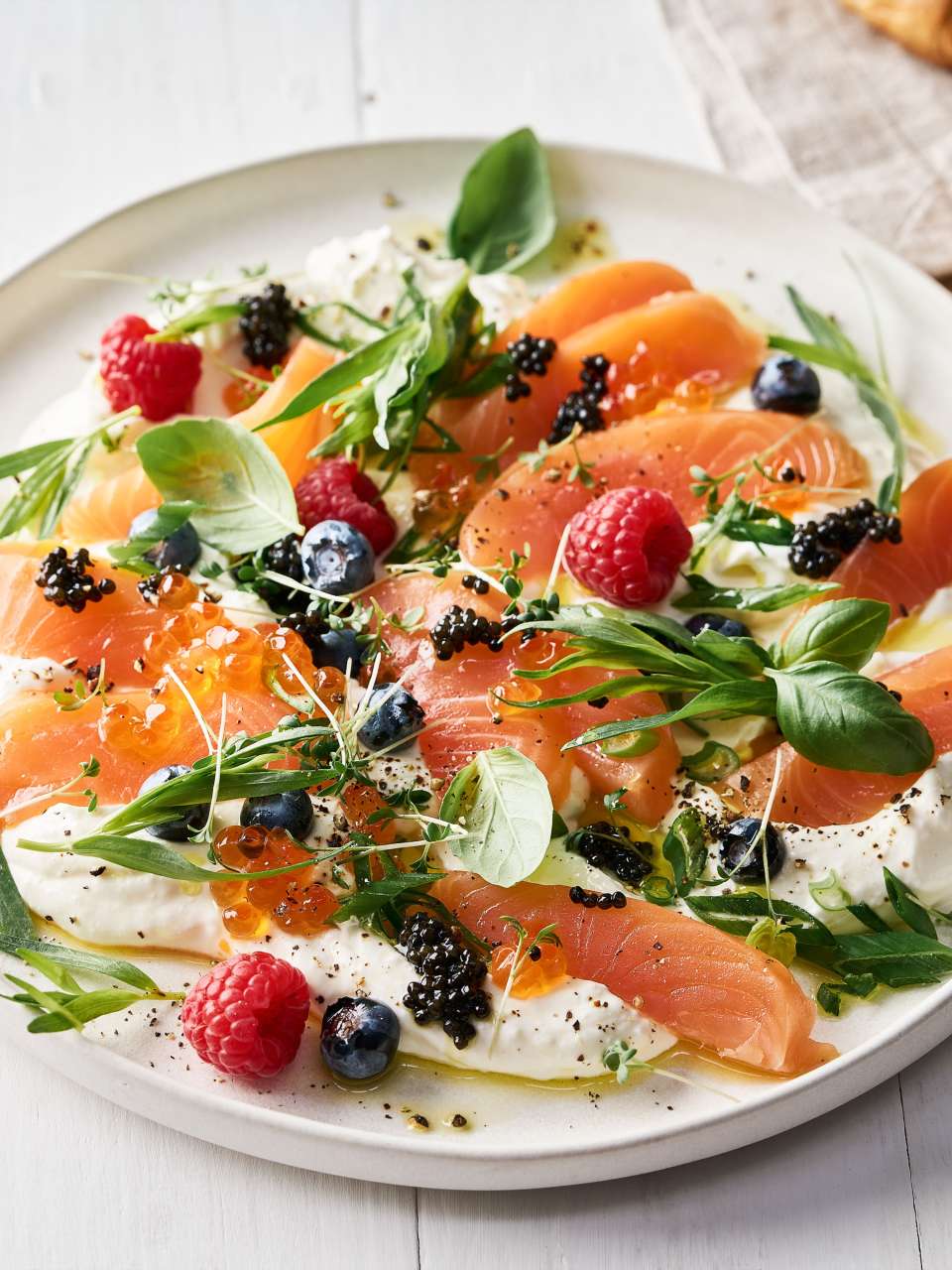 Kaviar und Räucherlachs auf Frischkäsecreme