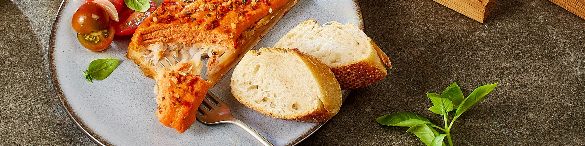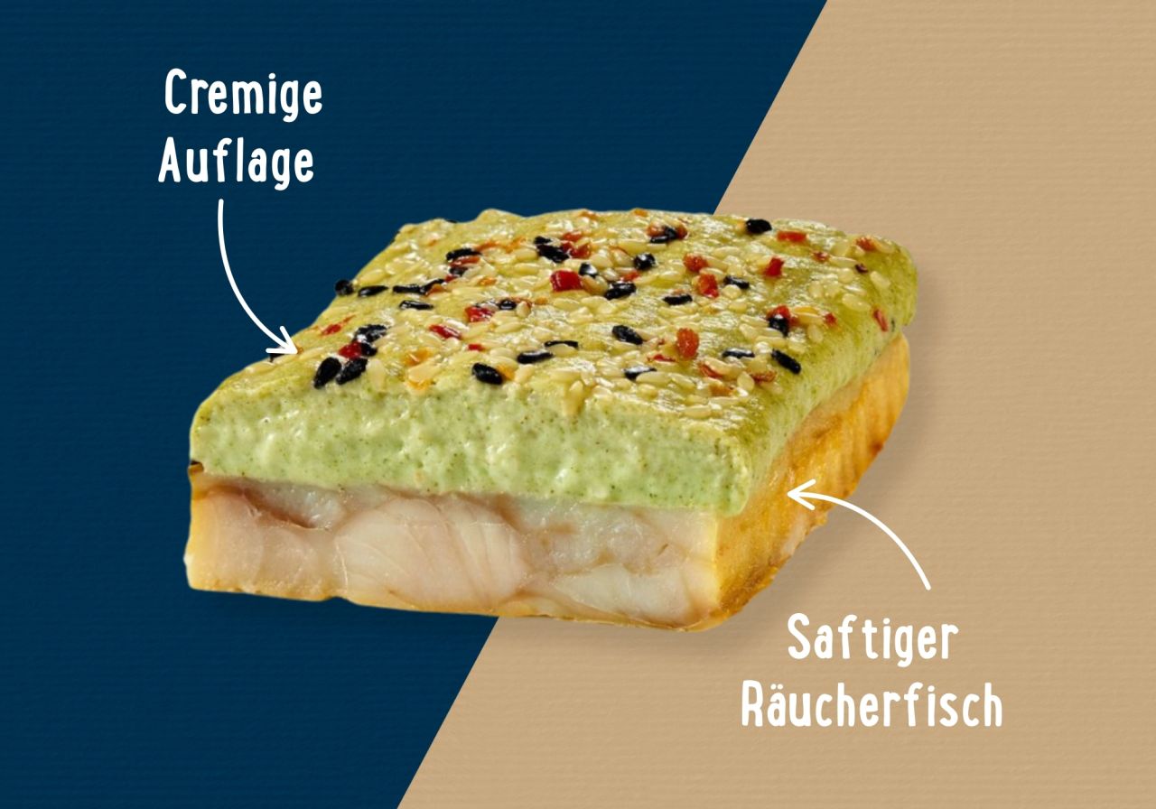 Dieses saftige Genuss-Duo verbindet heißgeräucherten Alaska-Seelachs mit einem cremigen Topping – für unkomplizierten Genuss, der sofort begeistert.