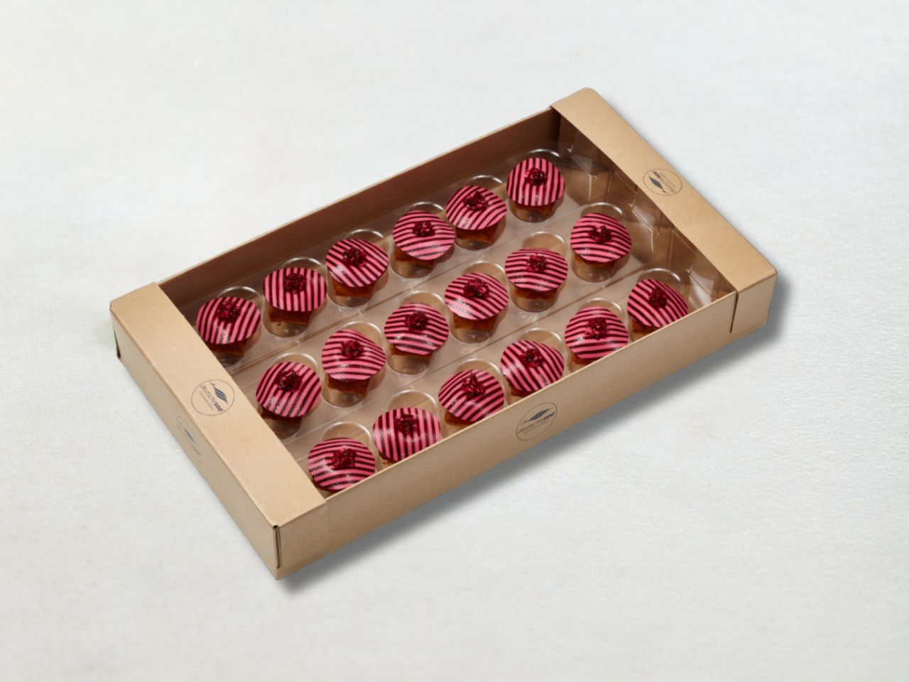 - Spezialverpackung für sicheren Transport und saubere, schnelle Entnahme zum Servieren