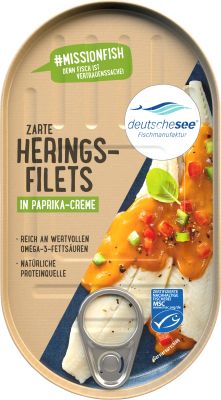 Geschmacksrichtungen. Die MSC-Heringsfilets in Tomaten-Creme zeichnen sich durch eine feine Tomatencreme aus, die perfekt mit dem milden Geschmack des blanchierten Herings harmoniert. Die MSC-Heringsfilets in Paprika-Creme bieten eine fruchtig-würzige Variante mit fein abgestimmter Paprikasauce. Für Liebhaber intensiverer Aromen gibt es die MSC-Heringsfilets in Pfeffer-Creme, die durch eine leicht scharfe Pfeffernote bestechen. Die MSC-Heringsfilets in Senf-Dill-Creme verbinden die traditionelle Kombination aus Senf und Dill zu einer feinwürzigen Note. Alle Heringsfilets werden nach höchsten Qualitätsstandards verarbeitet. Die blanchierten Filets werden in Dosen abgefüllt, mit der jeweiligen Sauce verfeinert und anschließend sterilisiert, um Frische und Geschmack optimal zu bewahren.
