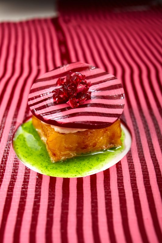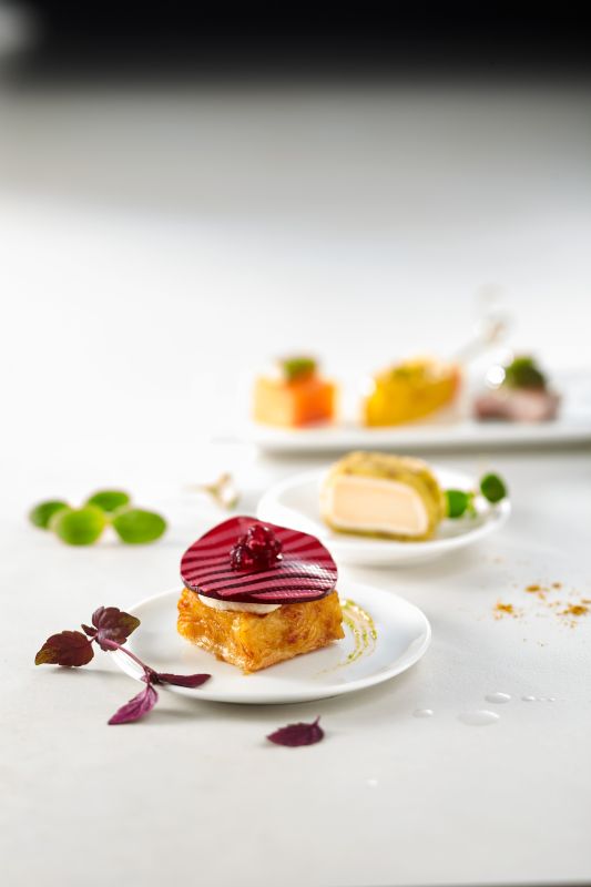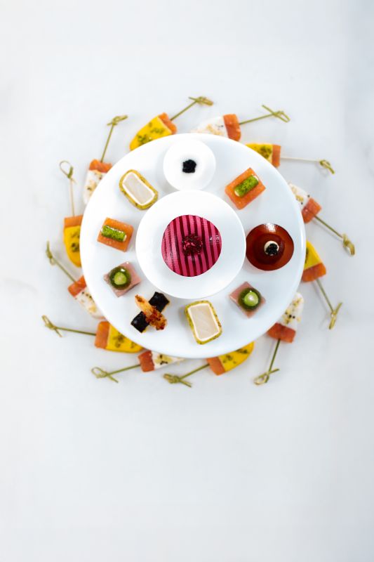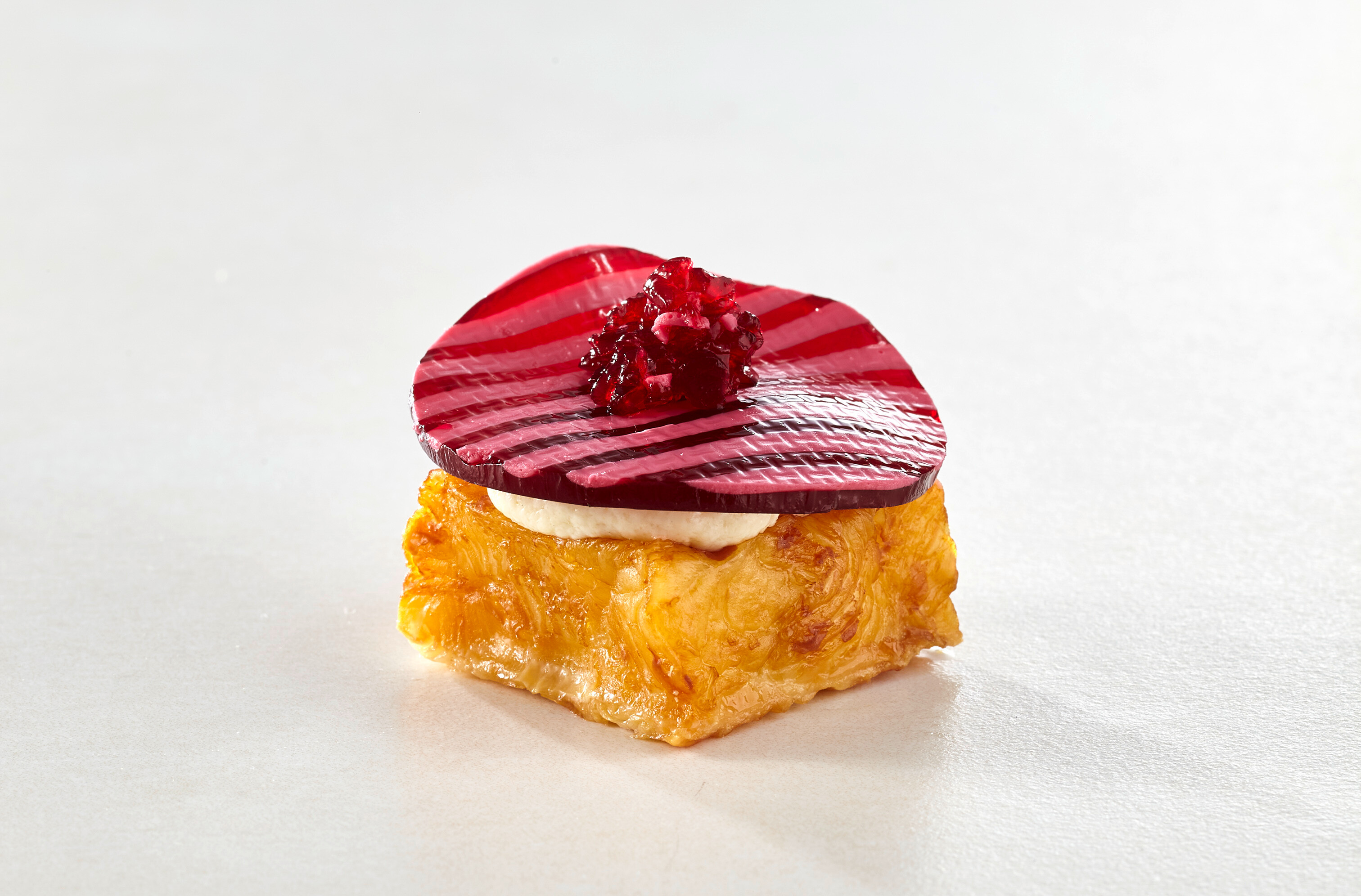 Jeder einzelne Würfel erzählt seine eigene Geschichte und schenkt Spitzenköchen die Möglichkeit, ihren Gästen exklusive Genussmomente zu präsentieren – sei es als stilvoller Empfangsgruß, eleganter Starter oder als Highlight auf Flying Buffets. Die Kombination aus zartem Rauch, cremiger Apfel-Meerrettich-Note und frischem, leicht süßlichem Gelee erzeugt ein Farbenspiel von optischer Raffinesse. Der erste Biss