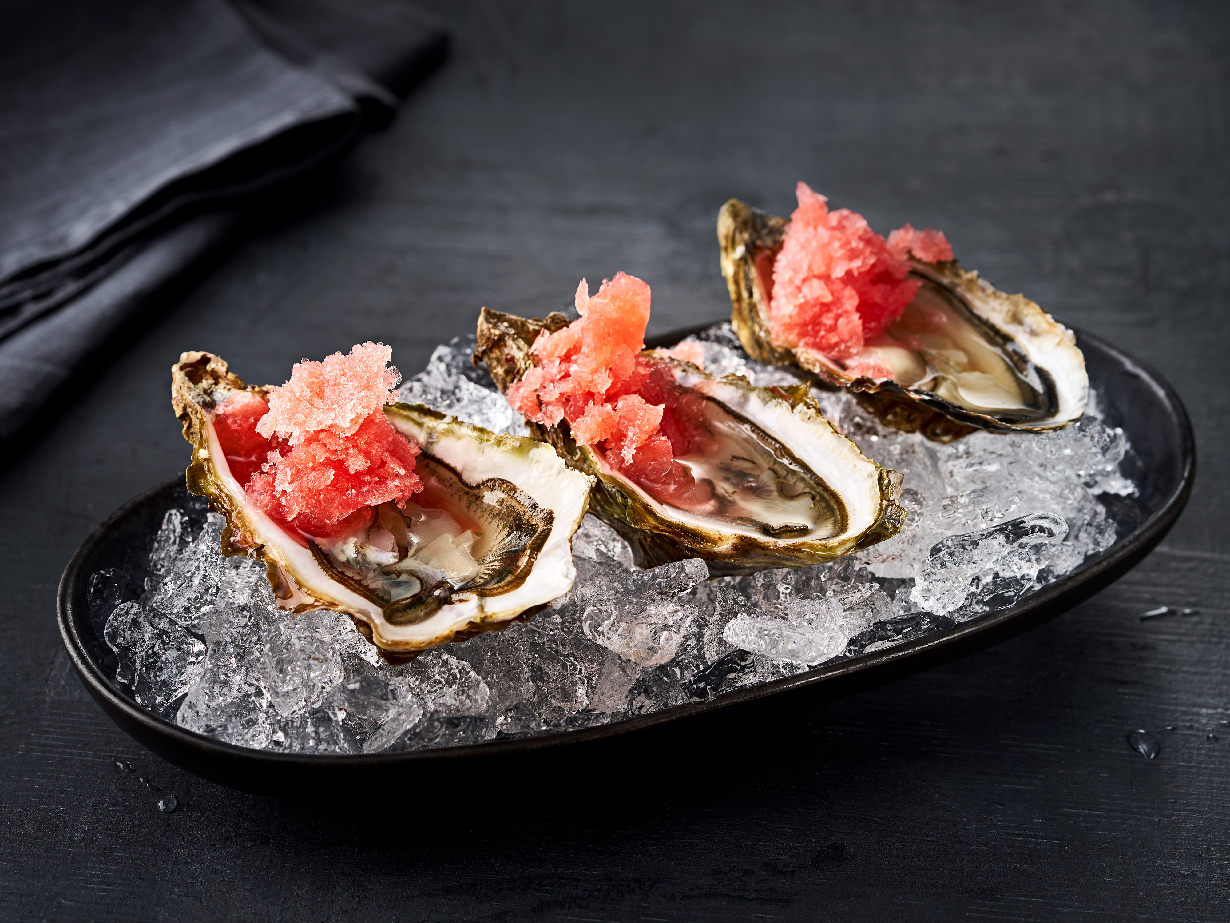 Die Zitrusnoten des süß-säuerlichen Granitas sind die perfekte Begleitung für die feinsalzigen Austern.