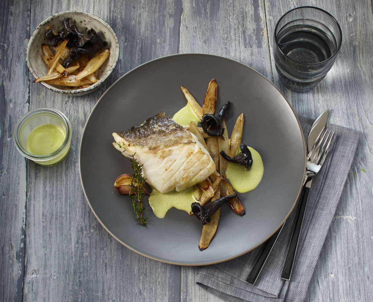 Der Kabeljau kann in diesem Fall mit Knoblauch, Rosmarin und Thymian angebraten und im Ofen sanft gargezogen werden. Dazu eine Sauce auf Basis von einem Bouquet Garni, einem Teil Bier, drei Teilen Geflügelbrühe und etwas Senf herstellen. Und wer noch Zeit und Lust hat, reicht zusätzlich sautierten Spitzkohl und Graupen.