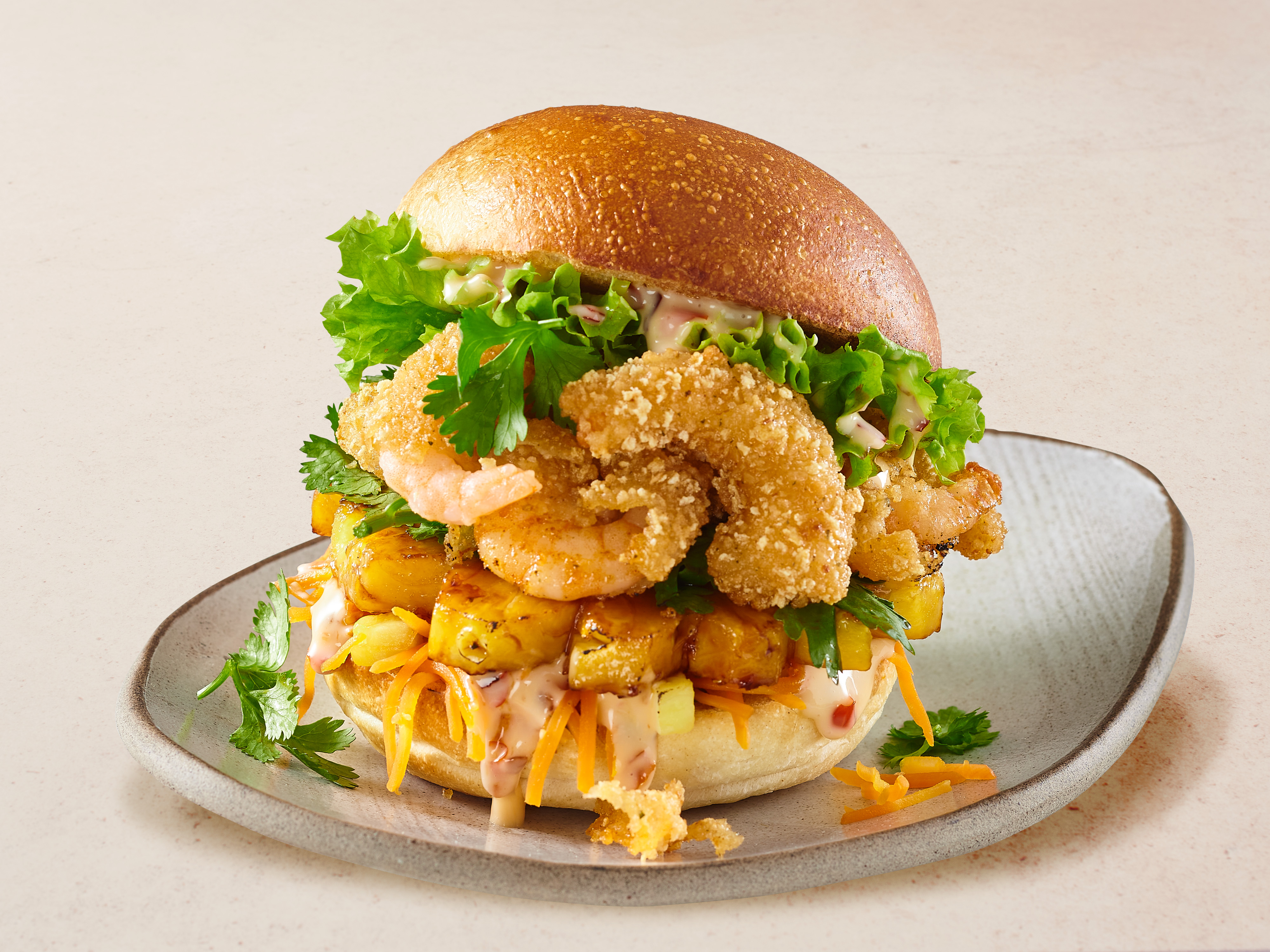Zwischen zwei Brötchenhälften schlummern knusprige Kokosgarnelen mit süß-saftiger Ananas. Ein Südseetraum zum Anbeißen.