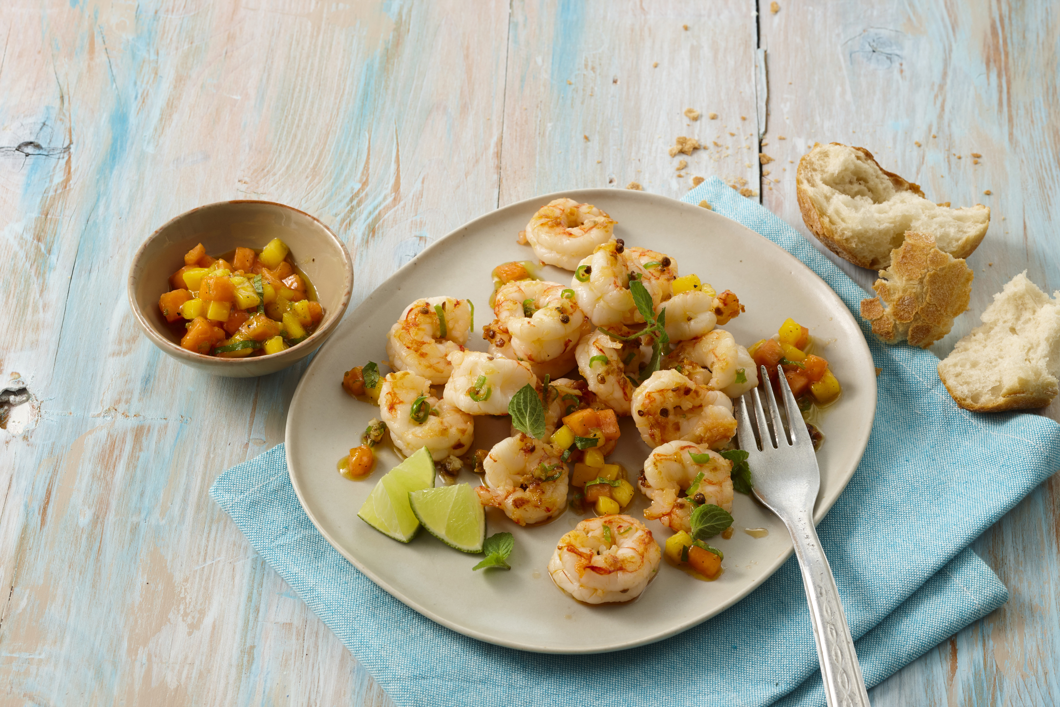 Argentinische Rotgarnelen pikant mariniert mit Chilli und Knoblauch, dazu eine fruchtige Salsa – Das ist Tango Argentino auf dem Teller.