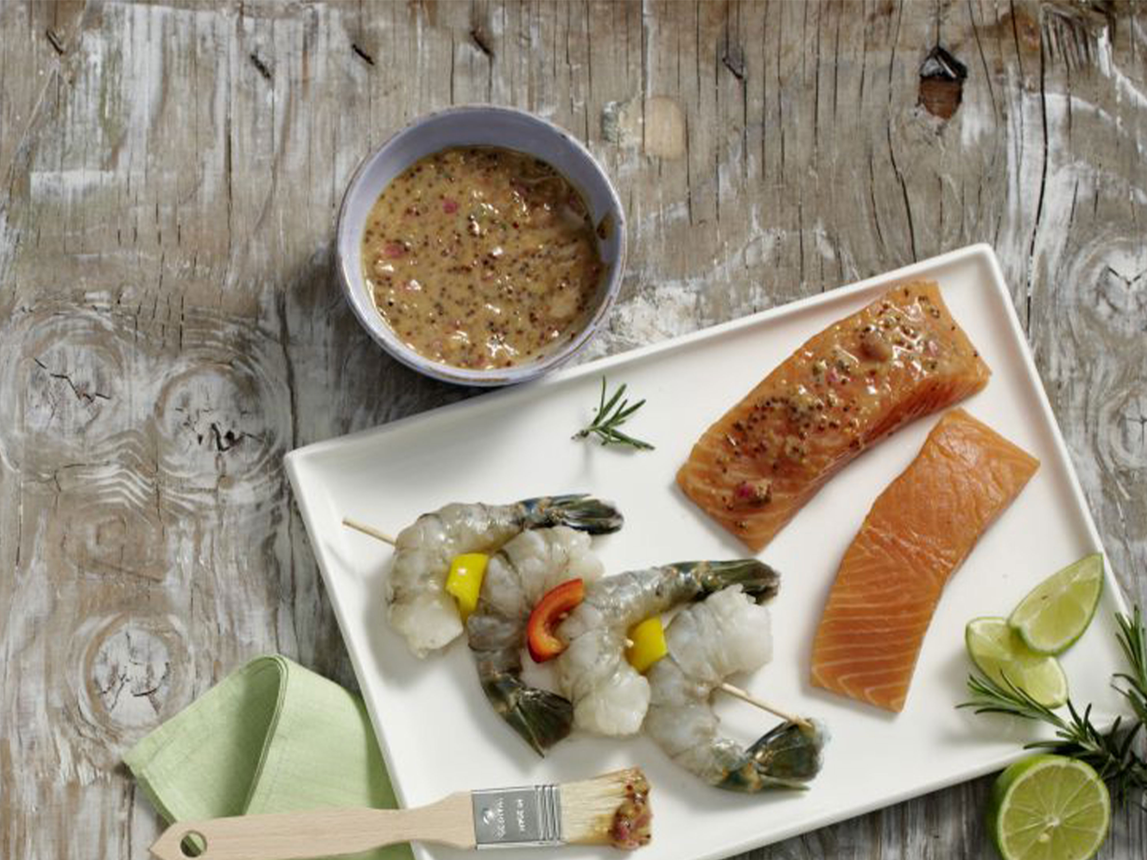 Die klassische Kombination aus Honig und Senf passt nicht nur kalt zu Graved Lachs, sondern verleiht auch gegrilltem Fisch eine würzige Kruste.
