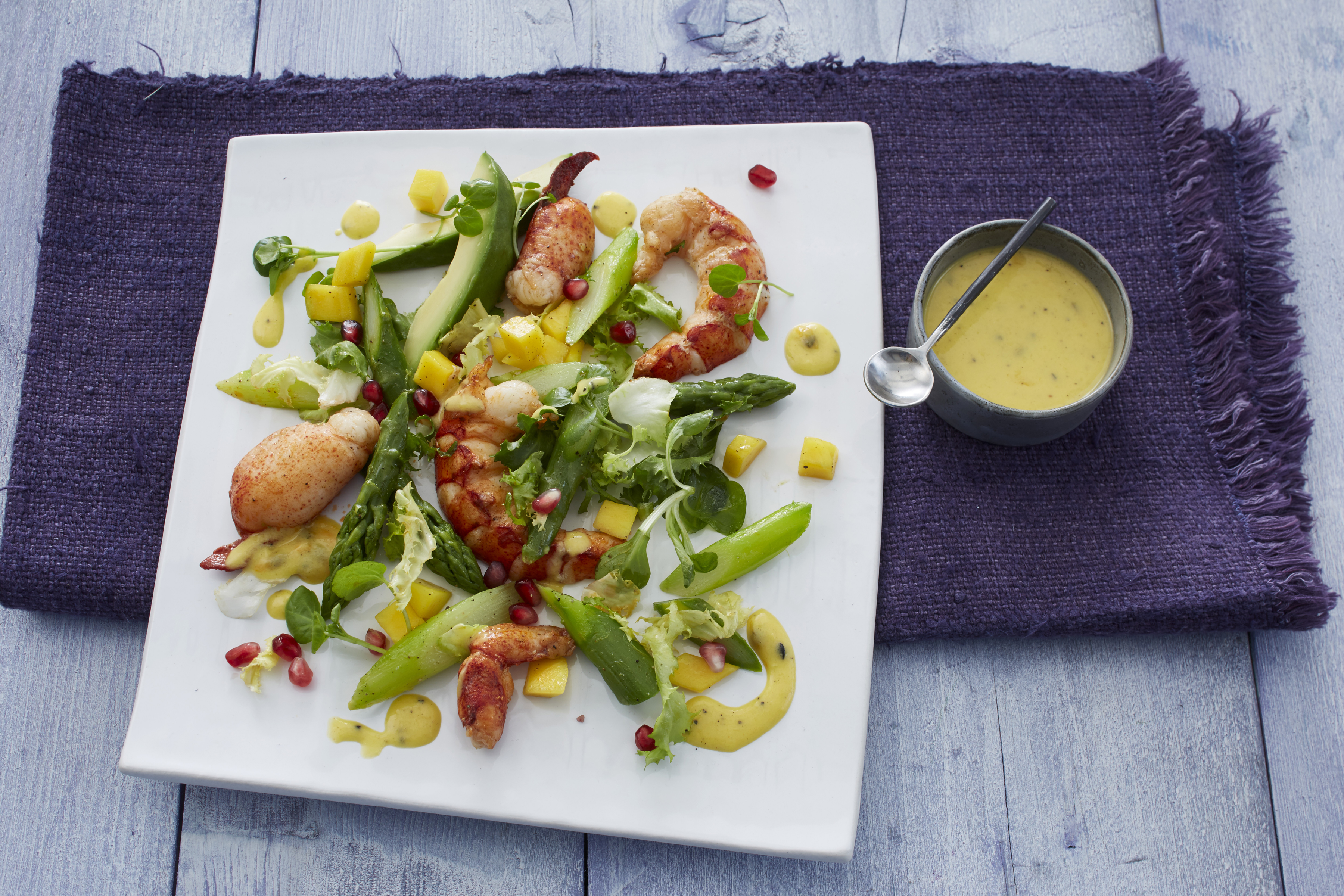 Pure Leidenschaft: Der süßlich-nussige Hummer harmoniert perfekt mit dem bunten Salat aus Mango, Passionsfrucht, Avocado & Granatapfel.