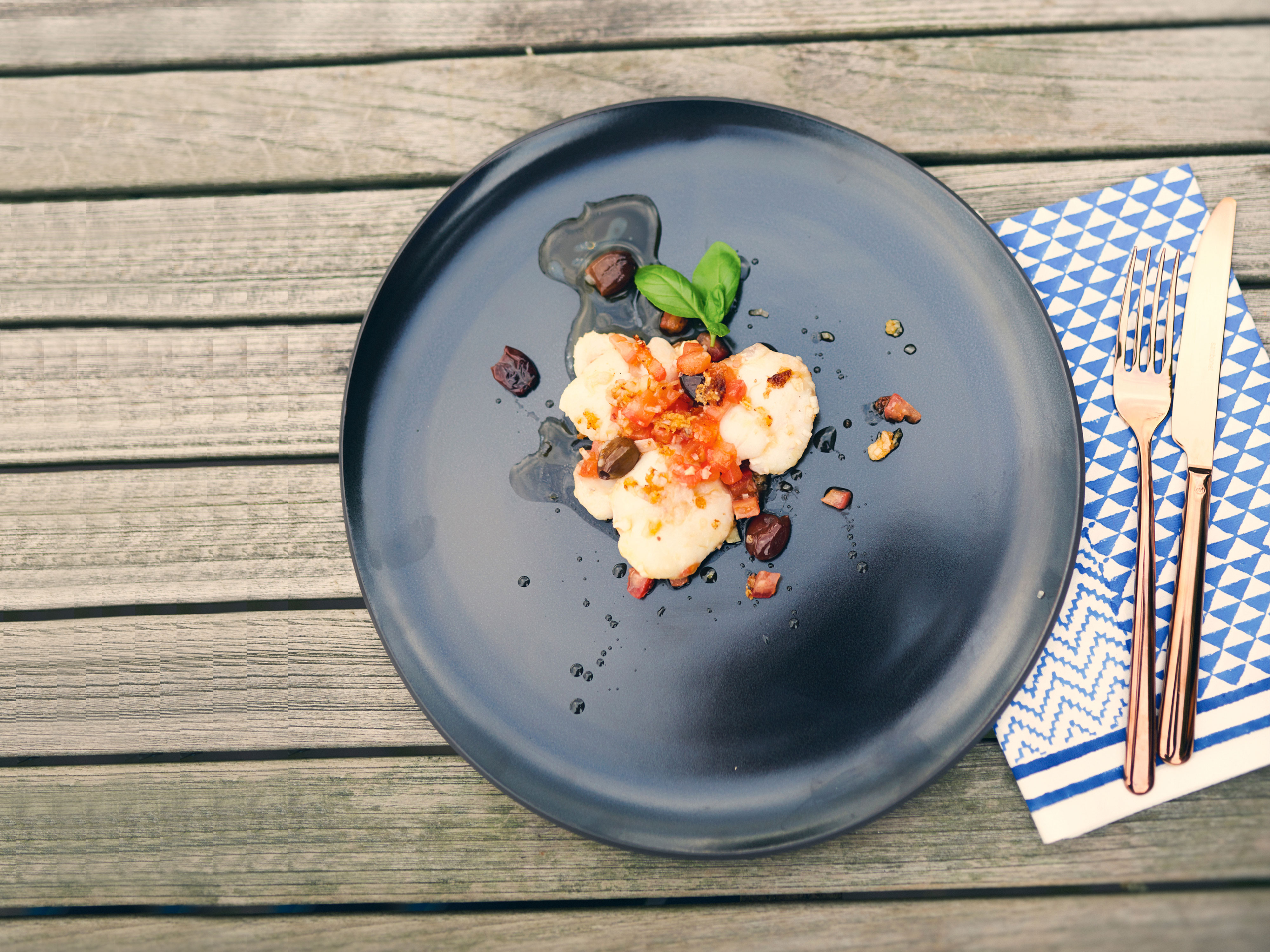 So zart und so pur: Bäckchen vom Kabeljau. Die feinen Kabeljau-Bäckchen werden ganz schlicht und unkompliziert mit Tomaten und Oliven sautiert.