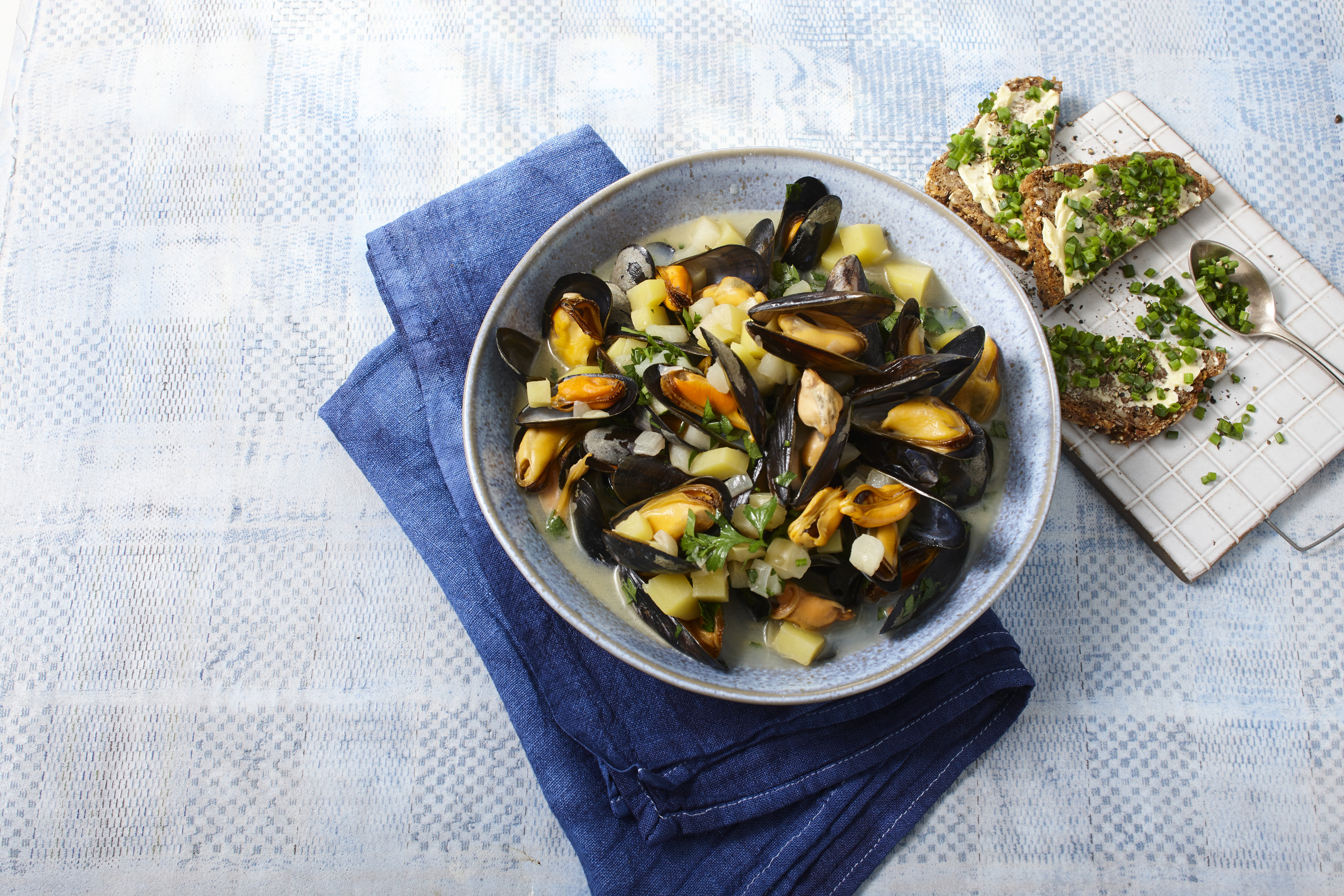 Der nächste Nordsee-Urlaub ist noch weit weg? Dann hilft dieses Rezept mit Miesmuscheln, säuerlichen Äpfeln, Kartoffeln und kräftigem Schwarzbrot übers Fernweh hinweg.