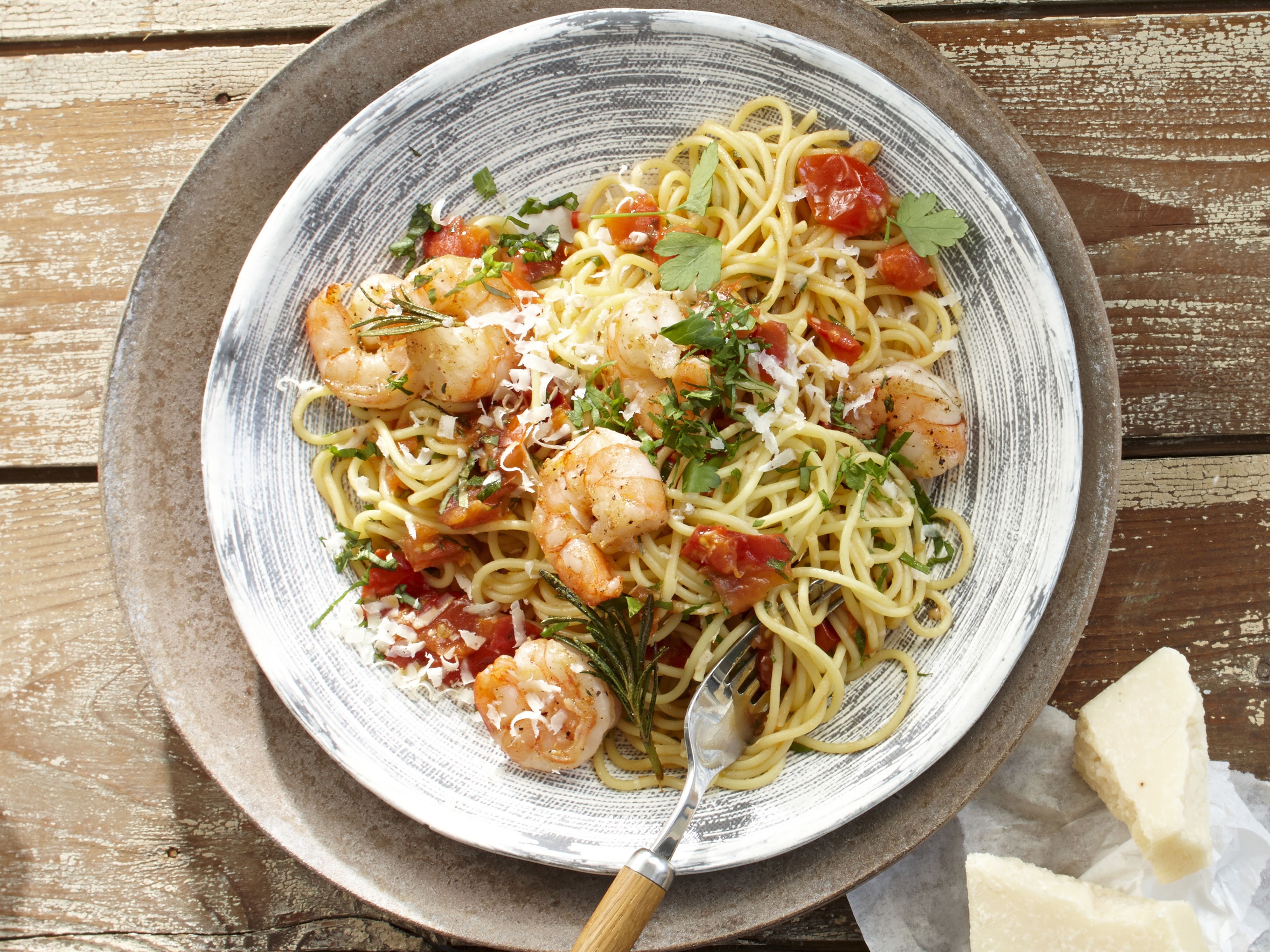 Genau so mag der Italiener seine Pasta: nix aus der Dose, reichlich Garnelen, Knoblauch und frische Kräuter wie Rosmarin, Thymian, Petersilie und Basilikum.