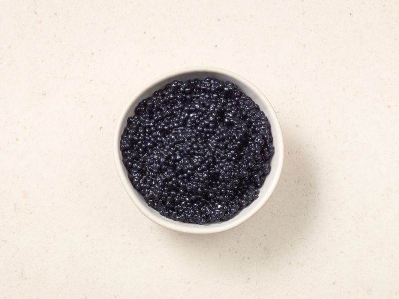Der Cavi-Art Algen-Kaviar »Classic« bringt die Faszination klassischer Kaviar-Optik und -Struktur auf pflanzliche Basis in die Küche. Aus Seealgen hergestellt, zeigt der schwarze Algenkaviar ein feines, ca. 1,5 mm kleines Korn mit frischem, aromatischem Duft und einer knackigen Konsistenz. Sein Geschmack orientiert sich am deutschen Kaviar – mit einer leicht reduzierten Salzigkeit und einer dezenten, ausgewogenen Meeresnote.
