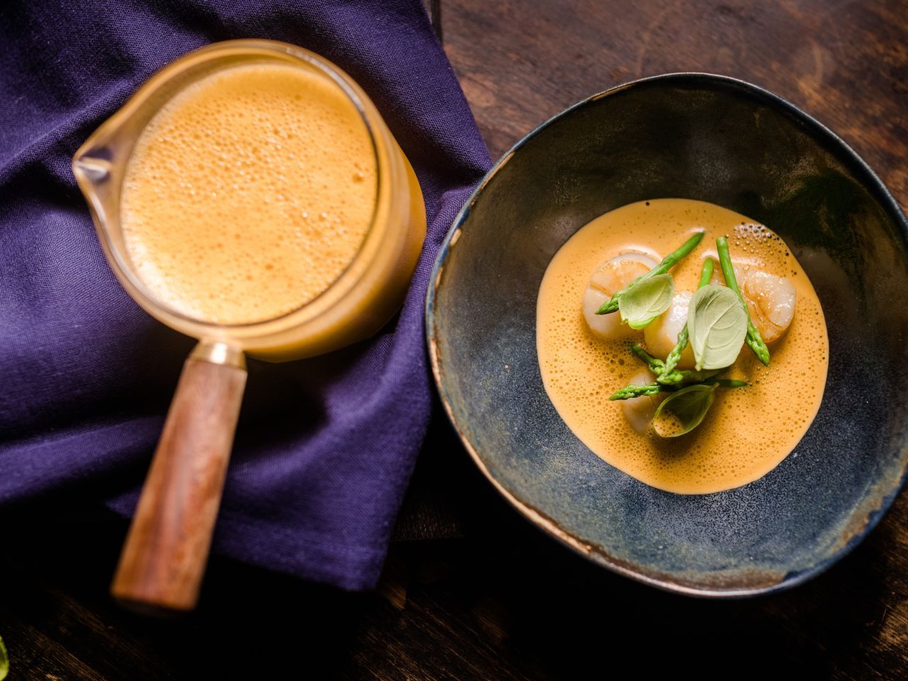 Für diesen besonderen Klassiker aus der Haute Cuisine verwendet Spitzenkoch Hendrik Otto nur ausgesuchte Zutaten von bester Qualität und Herkunft: Neben den Karkassen von Hummern kommen frische Zutaten wie Fenchel, Pilze, Ingwer und Schalotten zum Einsatz. Cognac, Portwein, französischer Wermut, Weißwein und ein Schuss Zitronensaft vertiefen den Geschmack, Sahne, Lauch und frisch geschnittener Estragon verfeinern ihn.