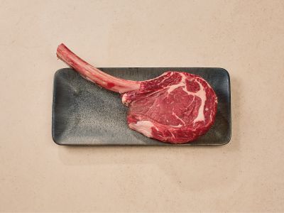 Zartes, trocken gereiftes Rinder-Steak aus der Hochrippe mit Knochen vom grasgefütterten Freilandrind. 900 g bestes britisches Rindfleisch, traditionell bis zu 28 Tage gereif. Tiefgefroren.