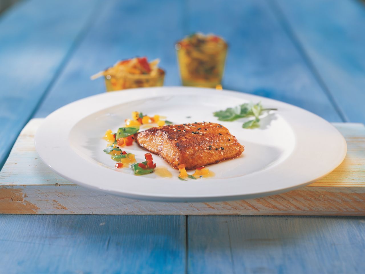 Tiefgekühltes Filet ohne Haut. Aus Aquakultur in Deutschland. Von Hand filetiert. Vakuumiert.
