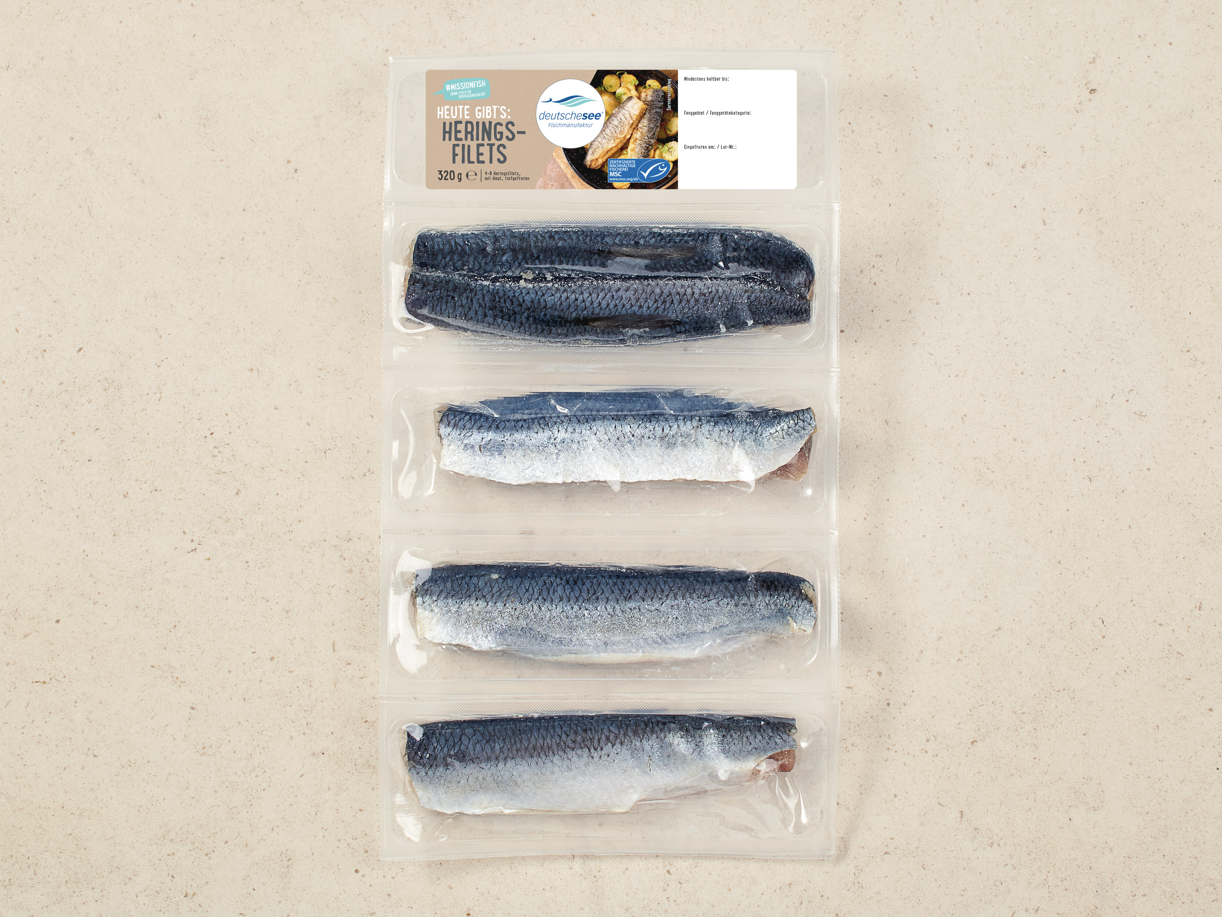 4-6 Heringsfilets; Aus MSC-zertifizierter Fischerei; Tiefgekühlt; Mit Haut; In der praktischen Mehrkammer-Verpackung