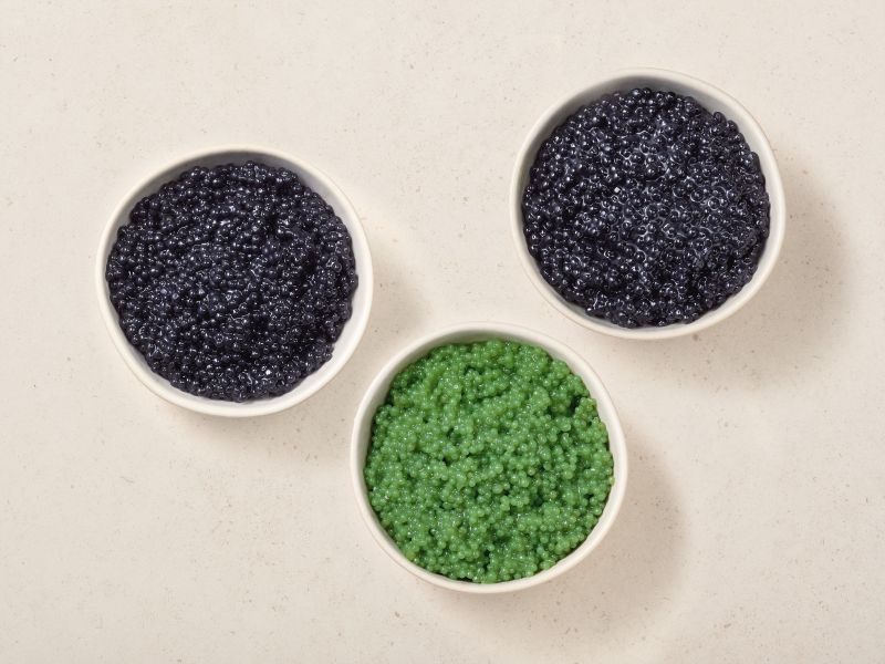 Feine Perlen, große Vielfalt: Mit unserem Probier-Bundle »Algen-Kaviar« erhalten Sie drei verschiedene Varianten auf Basis von Seealgen – inspiriert von klassischem Kaviar, aber mit rein pflanzlicher Rezeptur. Ideal für Vorspeisen, Bowls, Sushi oder Fingerfood und perfekt geeignet, um Gerichten im Handumdrehen eine besondere Note zu geben.