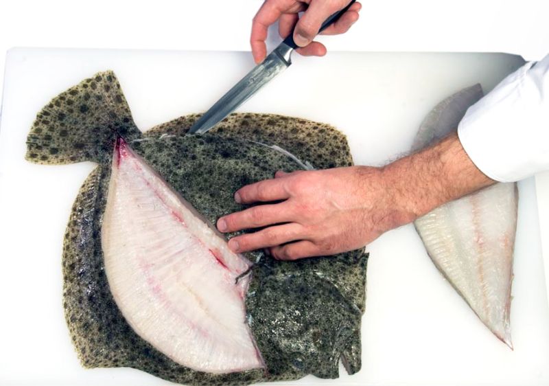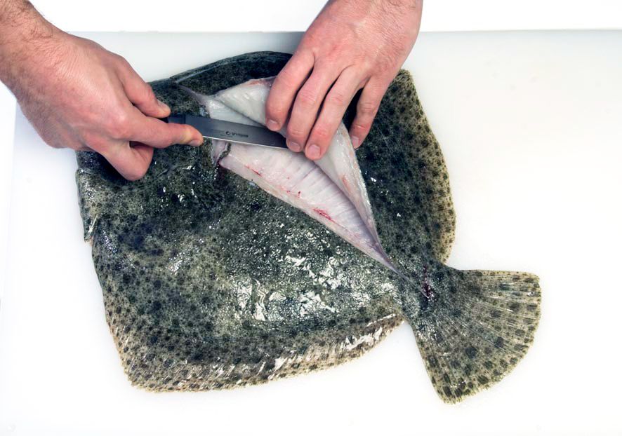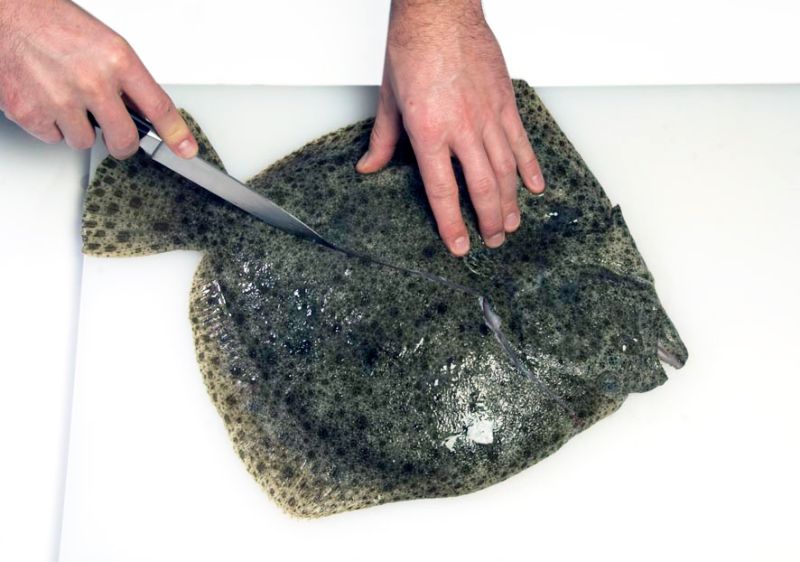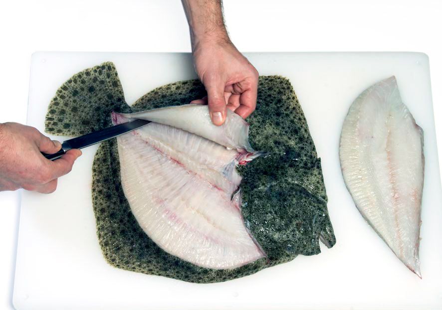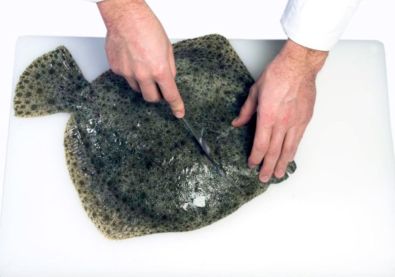 Steinbutt zählt zu den edelsten Meeresfischen. Sein erstklassiges Fleisch schmeckt feinwürzig und wird vor allem in der Sterneküche geschätzt. Die weißen Steinbuttfilets lassen sich zudem mühelos in der Pfanne oder im Ofen zubereiten. Und auch das Filetieren geht leicht von der Hand. In unserer Anleitung zeigen wir Ihnen Schritt für Schritt wie es geht. Alles was Sie benötigen ist eine scharfes, biegsames Filetiermesser und ein Schneidebrett in der passenden Größe.